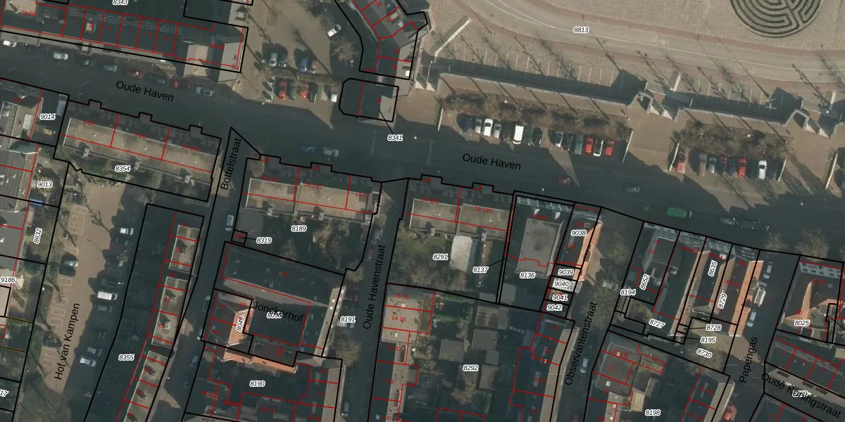 Het perceel waarop Oude Haven 16-A staat heeft een oppervlakte van 665 m². Dit is een groot perceel. De perceeloppervlakte wordt geregistreerd door het Kadaster. Gedetailleerde informatie over de maten van dit perceel kunt u vinden in het rapport Kadastrale kaart met maatvoering van Oude Haven 16-A.