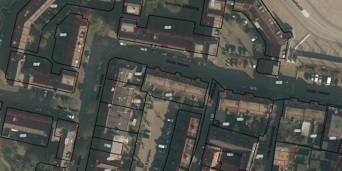 Het perceel waarop Oude Haven 8-B staat heeft een oppervlakte van 590 m². Dit is een groot perceel. De perceeloppervlakte wordt geregistreerd door het Kadaster. Gedetailleerde informatie over de maten van dit perceel kunt u vinden in het rapport Kadastrale kaart met maatvoering van Oude Haven 8-B.