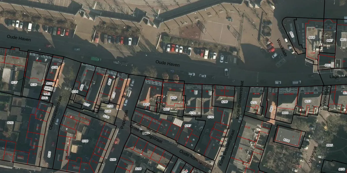 Het perceel waarop Oude Haven 82 staat heeft een oppervlakte van 263 m². Dit is een middelgroot perceel. De perceeloppervlakte wordt geregistreerd door het Kadaster. Gedetailleerde informatie over de maten van dit perceel kunt u vinden in het rapport Kadastrale kaart met maatvoering van Oude Haven 82.