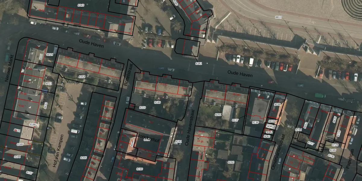 Het perceel waarop Oude Havenstraat 15 staat heeft een oppervlakte van 704 m². Dit is een groot perceel. De perceeloppervlakte wordt geregistreerd door het Kadaster. Gedetailleerde informatie over de maten van dit perceel kunt u vinden in het rapport Kadastrale kaart met maatvoering van Oude Havenstraat 15.