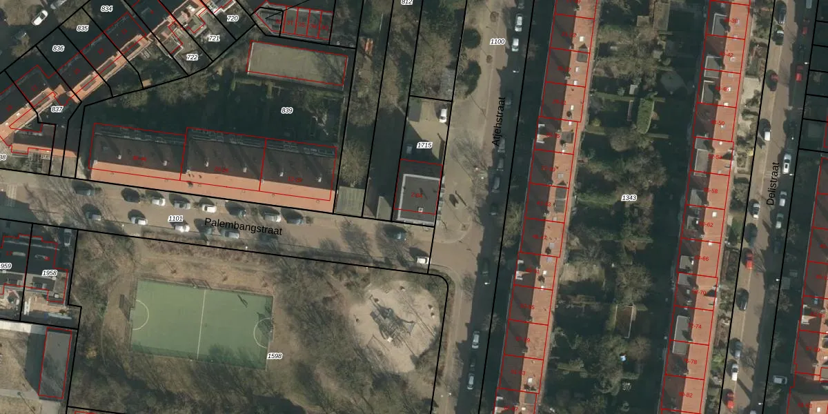 Het perceel waarop Palembangstraat 2 staat heeft een oppervlakte van 322 m². Dit is een groot perceel. De perceeloppervlakte wordt geregistreerd door het Kadaster. Gedetailleerde informatie over de maten van dit perceel kunt u vinden in het rapport Kadastrale kaart met maatvoering van Palembangstraat 2.