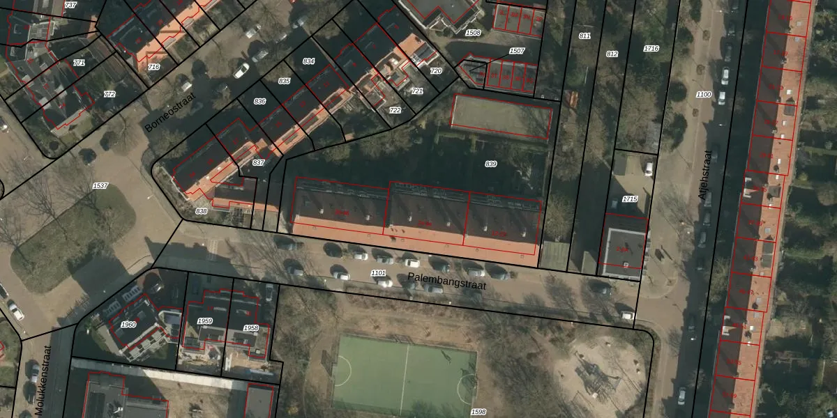 Het perceel waarop Palembangstraat 30 staat heeft een oppervlakte van 2042 m². Dit is een zeer groot perceel. De perceeloppervlakte wordt geregistreerd door het Kadaster. Gedetailleerde informatie over de maten van dit perceel kunt u vinden in het rapport Kadastrale kaart met maatvoering van Palembangstraat 30.