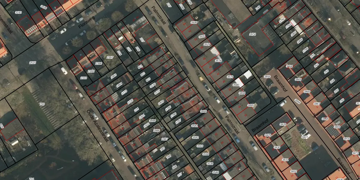 Het perceel waarop Palmstraat 43 staat heeft een oppervlakte van 153 m². Dit is een middelgroot perceel. De perceeloppervlakte wordt geregistreerd door het Kadaster. Gedetailleerde informatie over de maten van dit perceel kunt u vinden in het rapport Kadastrale kaart met maatvoering van Palmstraat 43.