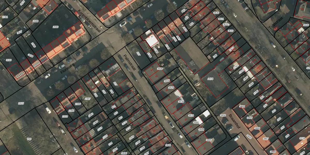 Palmstraat 52 is gelegen op kadastraal perceel NBH00I3506. Deze kadastrale aanduiding is uniek en wordt gebruikt door het Kadaster om eigendomsrechten en andere zakelijke rechten vast te leggen. Het perceel maakt onderdeel uit van de kadastrale gemeente Neerbosch.