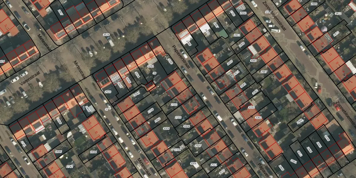 Het perceel waarop Papaverstraat 21 staat heeft een oppervlakte van 640 m². Dit is een groot perceel. De perceeloppervlakte wordt geregistreerd door het Kadaster. Gedetailleerde informatie over de maten van dit perceel kunt u vinden in het rapport Kadastrale kaart met maatvoering van Papaverstraat 21.