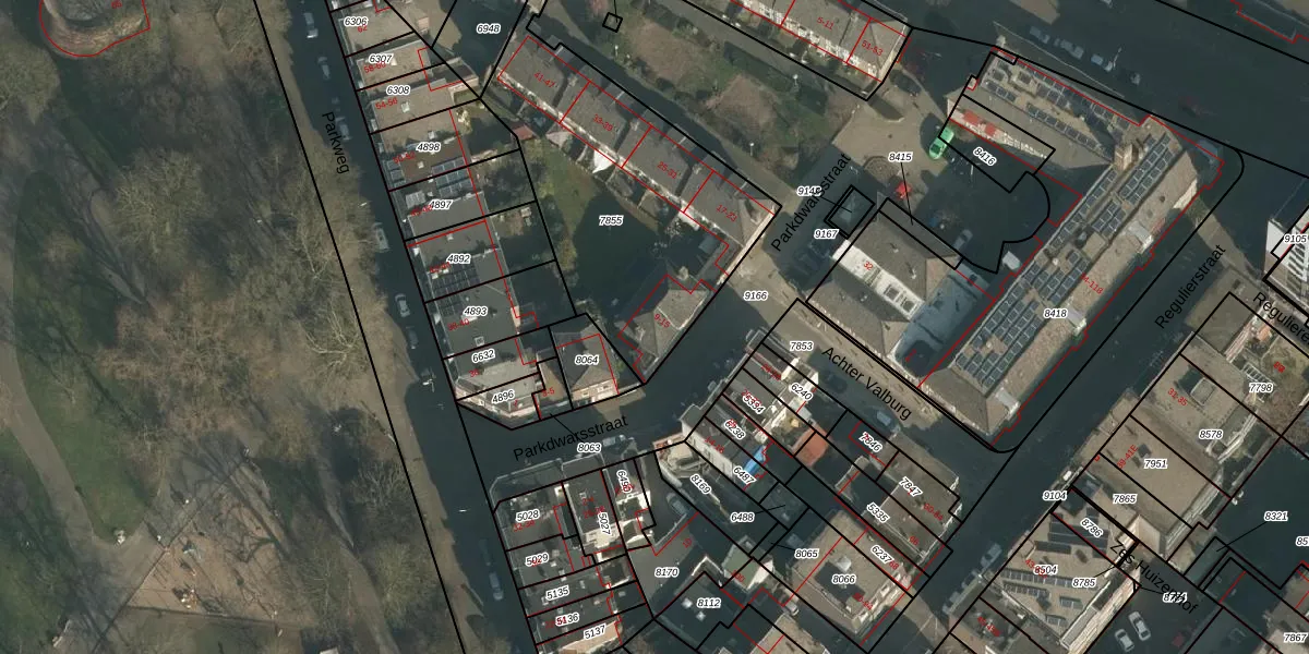 Het perceel waarop Parkdwarsstraat 13 staat heeft een oppervlakte van 1945 m². Dit is een zeer groot perceel. De perceeloppervlakte wordt geregistreerd door het Kadaster. Gedetailleerde informatie over de maten van dit perceel kunt u vinden in het rapport Kadastrale kaart met maatvoering van Parkdwarsstraat 13.