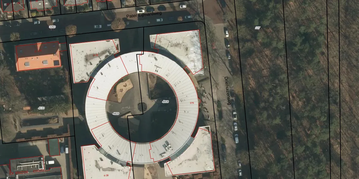 Het perceel waarop Pater Eijmardweg 3-D staat heeft een oppervlakte van 3885 m². Dit is een zeer groot perceel. De perceeloppervlakte wordt geregistreerd door het Kadaster. Gedetailleerde informatie over de maten van dit perceel kunt u vinden in het rapport Kadastrale kaart met maatvoering van Pater Eijmardweg 3-D.