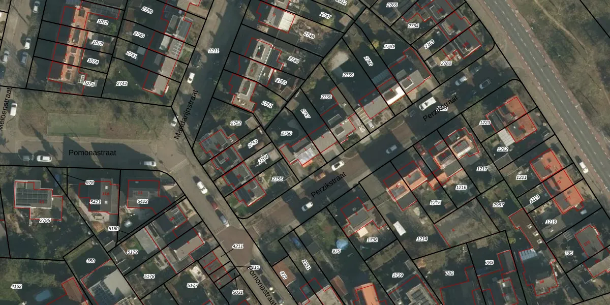 Perzikstraat 1 is gelegen op kadastraal perceel NBH00H2756. Deze kadastrale aanduiding is uniek en wordt gebruikt door het Kadaster om eigendomsrechten en andere zakelijke rechten vast te leggen. Het perceel maakt onderdeel uit van de kadastrale gemeente Neerbosch.