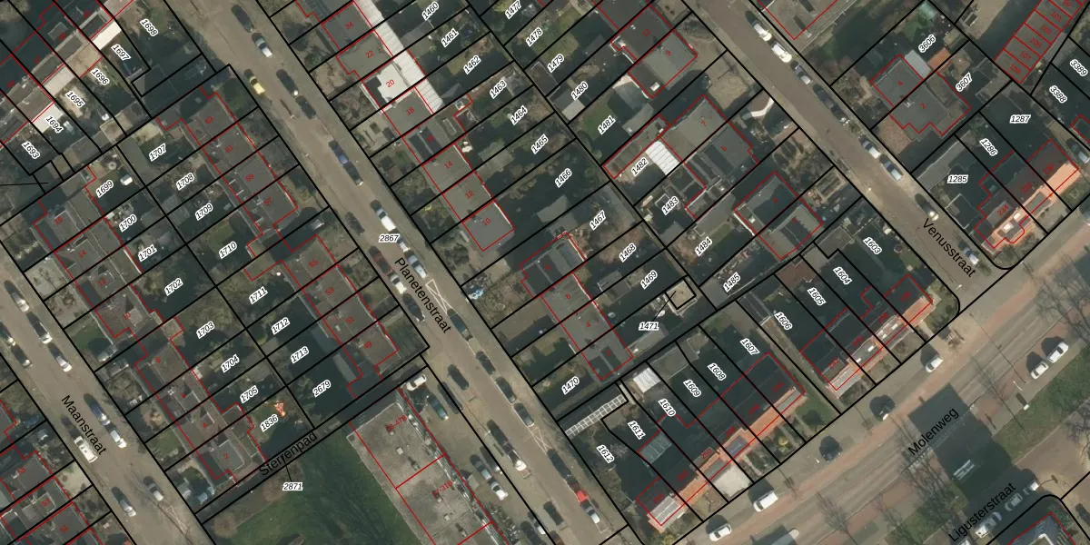Het perceel waarop Planetenstraat 8 staat heeft een oppervlakte van 325 m². Dit is een groot perceel. De perceeloppervlakte wordt geregistreerd door het Kadaster. Gedetailleerde informatie over de maten van dit perceel kunt u vinden in het rapport Kadastrale kaart met maatvoering van Planetenstraat 8.