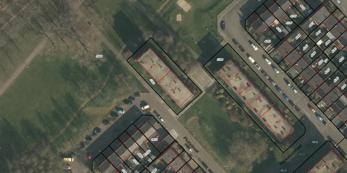 Het perceel waarop Plutostraat 2-A staat heeft een oppervlakte van 825 m². Dit is een groot perceel. De perceeloppervlakte wordt geregistreerd door het Kadaster. Gedetailleerde informatie over de maten van dit perceel kunt u vinden in het rapport Kadastrale kaart met maatvoering van Plutostraat 2-A.