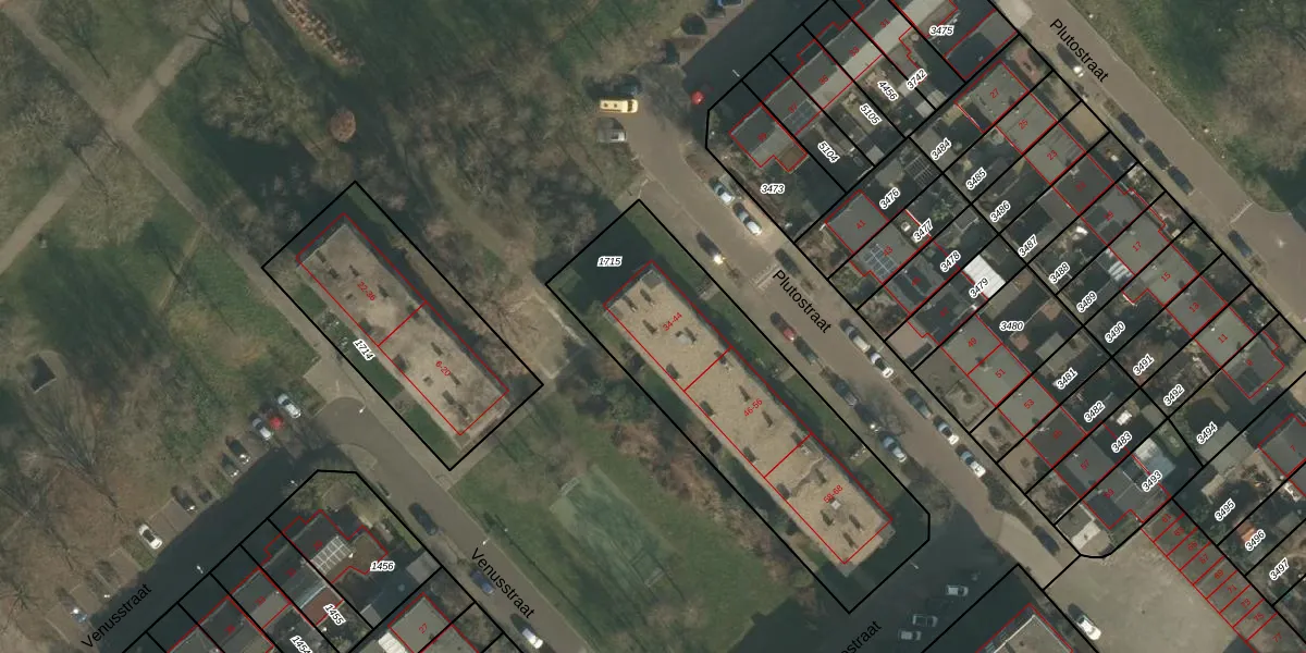 Plutostraat 38 is gelegen op kadastraal perceel NBH00H1715. Deze kadastrale aanduiding is uniek en wordt gebruikt door het Kadaster om eigendomsrechten en andere zakelijke rechten vast te leggen. Het perceel maakt onderdeel uit van de kadastrale gemeente Neerbosch.