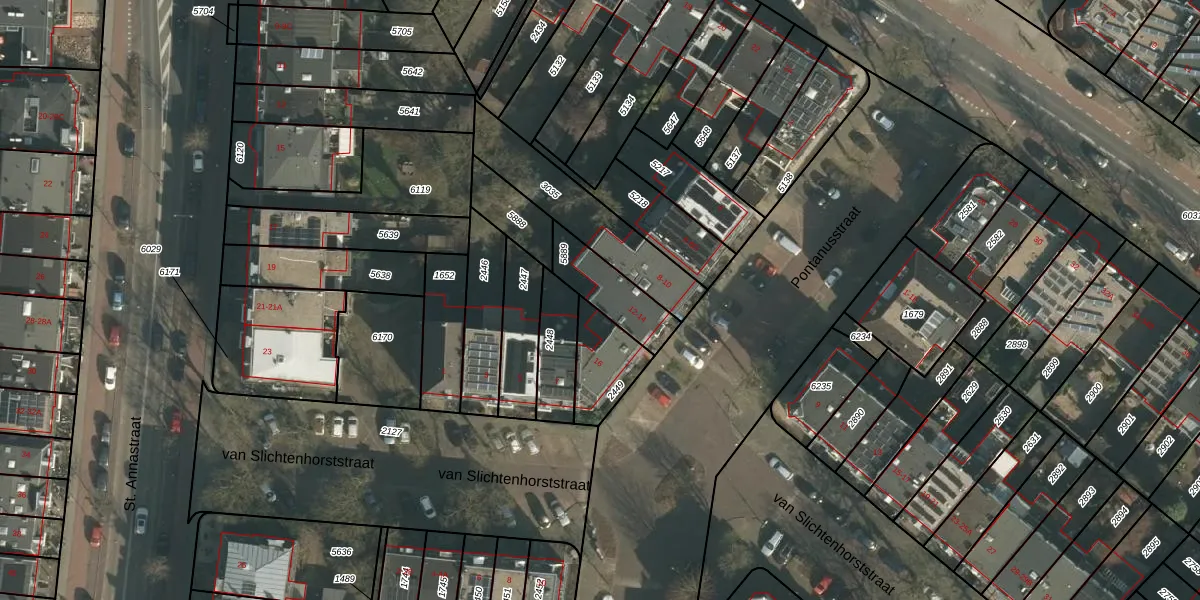 Pontanusstraat 14 is gelegen op kadastraal perceel NMG00B5889. Deze kadastrale aanduiding is uniek en wordt gebruikt door het Kadaster om eigendomsrechten en andere zakelijke rechten vast te leggen. Het perceel maakt onderdeel uit van de kadastrale gemeente Nijmegen.