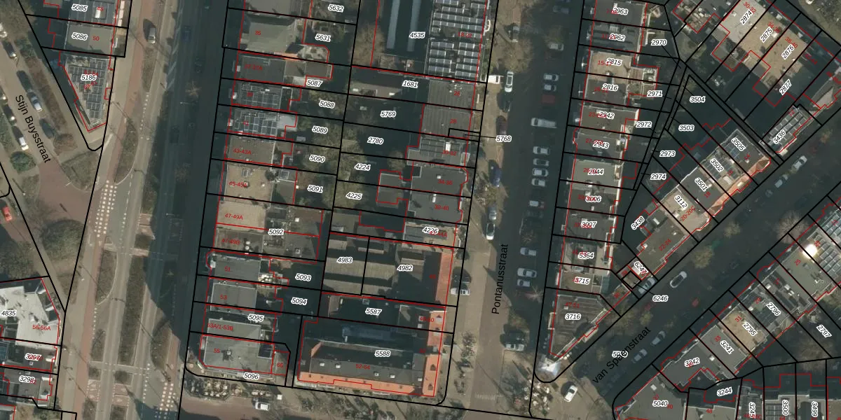 Het perceel waarop Pontanusstraat 40 staat heeft een oppervlakte van 219 m². Dit is een middelgroot perceel. De perceeloppervlakte wordt geregistreerd door het Kadaster. Gedetailleerde informatie over de maten van dit perceel kunt u vinden in het rapport Kadastrale kaart met maatvoering van Pontanusstraat 40.