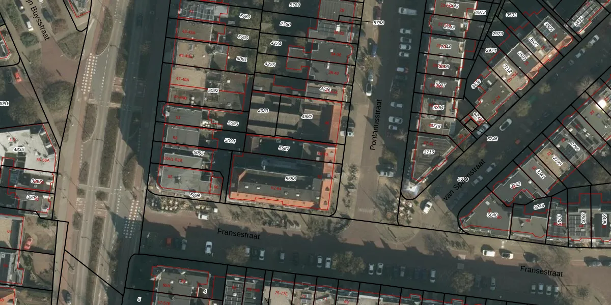 Pontanusstraat 50 is gelegen op kadastraal perceel NMG00B5587. Deze kadastrale aanduiding is uniek en wordt gebruikt door het Kadaster om eigendomsrechten en andere zakelijke rechten vast te leggen. Het perceel maakt onderdeel uit van de kadastrale gemeente Nijmegen.
