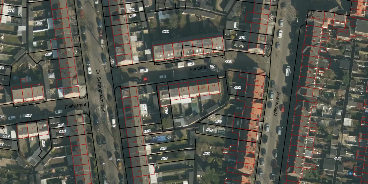 Pootstraat 6 is gelegen op kadastraal perceel HTT02M4908. Deze kadastrale aanduiding is uniek en wordt gebruikt door het Kadaster om eigendomsrechten en andere zakelijke rechten vast te leggen. Het perceel maakt onderdeel uit van de kadastrale gemeente Hatert.