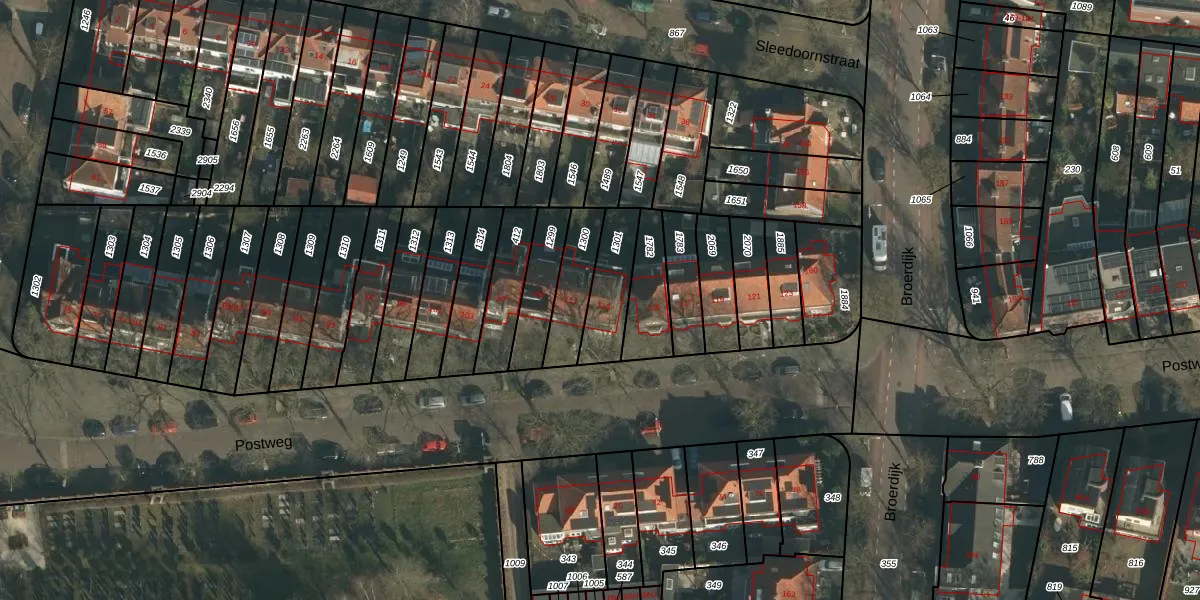 Gebruik de zoekbalk of klik op een perceel voor informatie over de adressen binnen dit perceel.