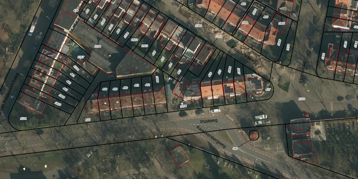 Het perceel waarop Postweg 61 staat heeft een oppervlakte van 445 m². Dit is een groot perceel. De perceeloppervlakte wordt geregistreerd door het Kadaster. Gedetailleerde informatie over de maten van dit perceel kunt u vinden in het rapport Kadastrale kaart met maatvoering van Postweg 61.