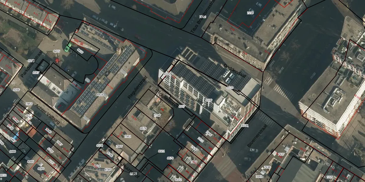 Het perceel waarop Regulierstraat 11-A-16 staat heeft een oppervlakte van 1085 m². Dit is een zeer groot perceel. De perceeloppervlakte wordt geregistreerd door het Kadaster. Gedetailleerde informatie over de maten van dit perceel kunt u vinden in het rapport Kadastrale kaart met maatvoering van Regulierstraat 11-A-16.
