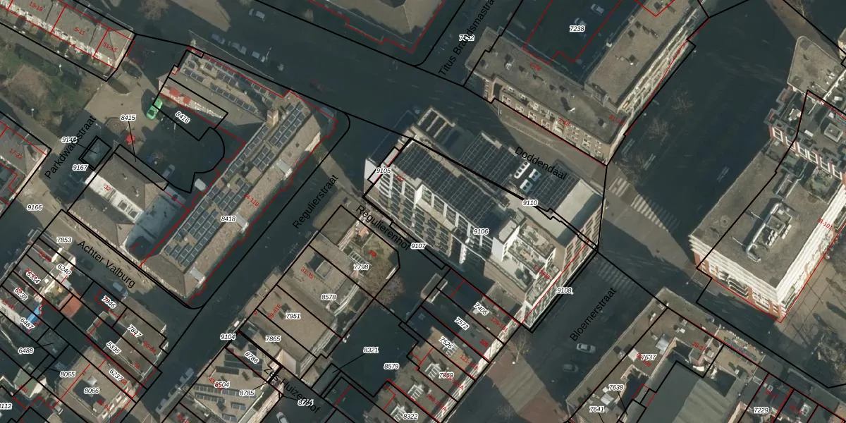 Het perceel waarop Regulierstraat 13-A-16 staat heeft een oppervlakte van 1085 m². Dit is een zeer groot perceel. De perceeloppervlakte wordt geregistreerd door het Kadaster. Gedetailleerde informatie over de maten van dit perceel kunt u vinden in het rapport Kadastrale kaart met maatvoering van Regulierstraat 13-A-16.