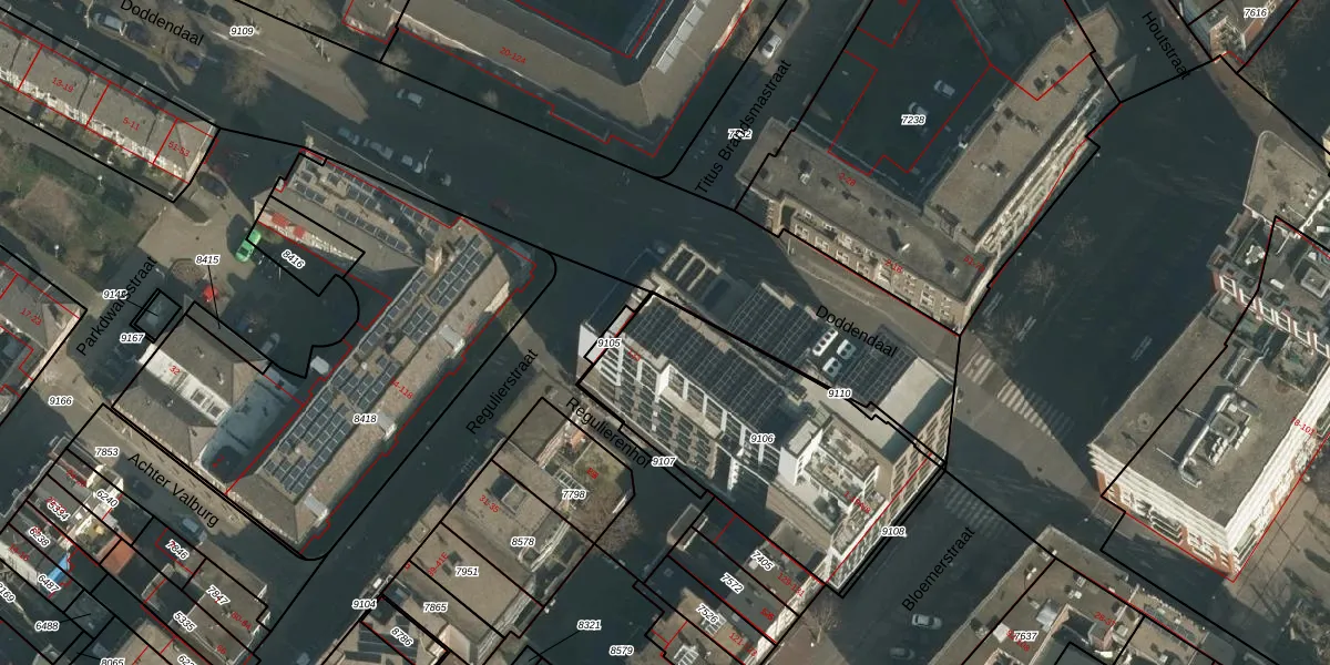 Het perceel waarop Regulierstraat 7-A-1 staat heeft een oppervlakte van 1085 m². Dit is een zeer groot perceel. De perceeloppervlakte wordt geregistreerd door het Kadaster. Gedetailleerde informatie over de maten van dit perceel kunt u vinden in het rapport Kadastrale kaart met maatvoering van Regulierstraat 7-A-1.