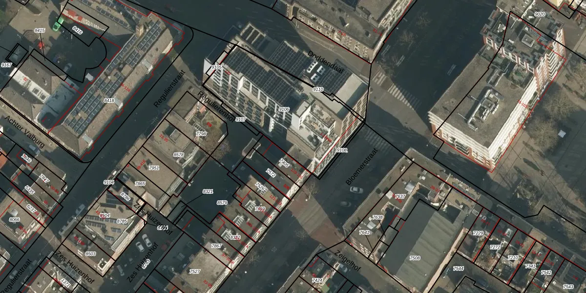Het perceel waarop Regulierstraat 9-A-13 staat heeft een oppervlakte van 1085 m². Dit is een zeer groot perceel. De perceeloppervlakte wordt geregistreerd door het Kadaster. Gedetailleerde informatie over de maten van dit perceel kunt u vinden in het rapport Kadastrale kaart met maatvoering van Regulierstraat 9-A-13.