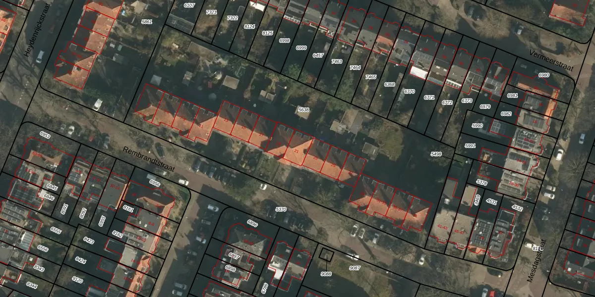 Het perceel waarop Rembrandtstraat 21 staat heeft een oppervlakte van 3850 m². Dit is een zeer groot perceel. De perceeloppervlakte wordt geregistreerd door het Kadaster. Gedetailleerde informatie over de maten van dit perceel kunt u vinden in het rapport Kadastrale kaart met maatvoering van Rembrandtstraat 21.