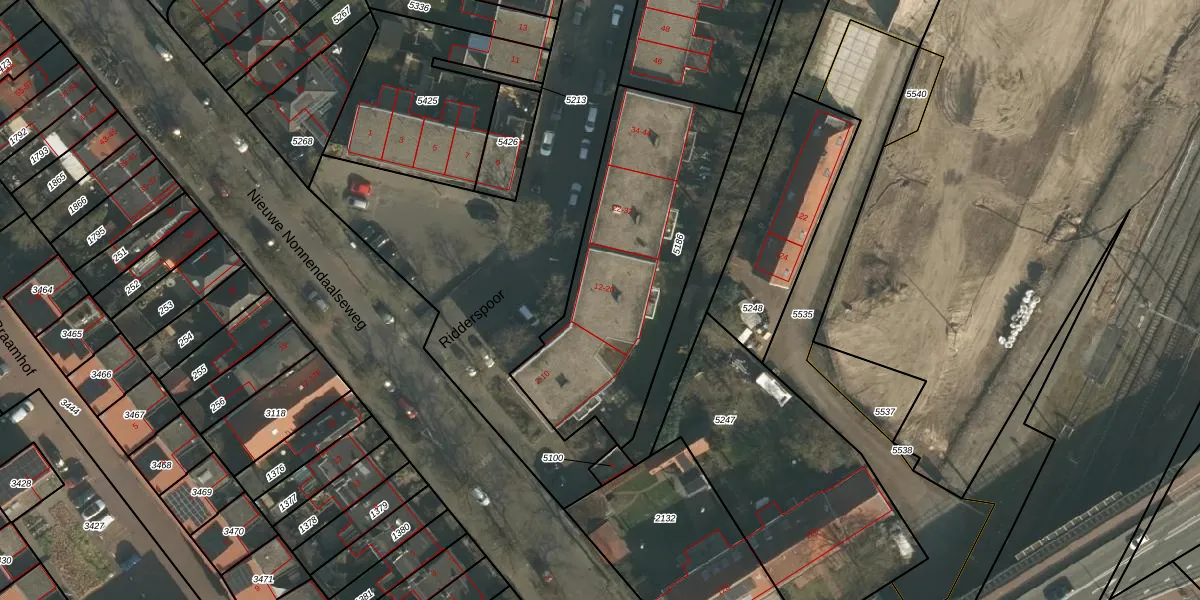 Ridderspoor 16 is gelegen op kadastraal perceel NBH00B5186. Deze kadastrale aanduiding is uniek en wordt gebruikt door het Kadaster om eigendomsrechten en andere zakelijke rechten vast te leggen. Het perceel maakt onderdeel uit van de kadastrale gemeente Neerbosch.