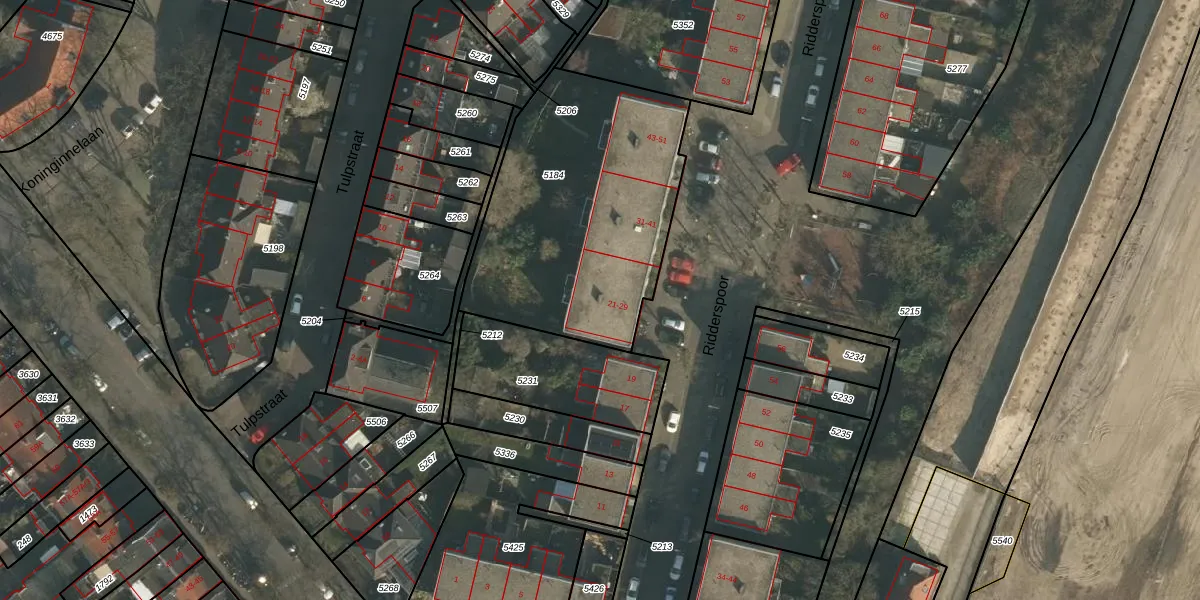 Ridderspoor 29 is gelegen op kadastraal perceel NBH00B5184. Deze kadastrale aanduiding is uniek en wordt gebruikt door het Kadaster om eigendomsrechten en andere zakelijke rechten vast te leggen. Het perceel maakt onderdeel uit van de kadastrale gemeente Neerbosch.