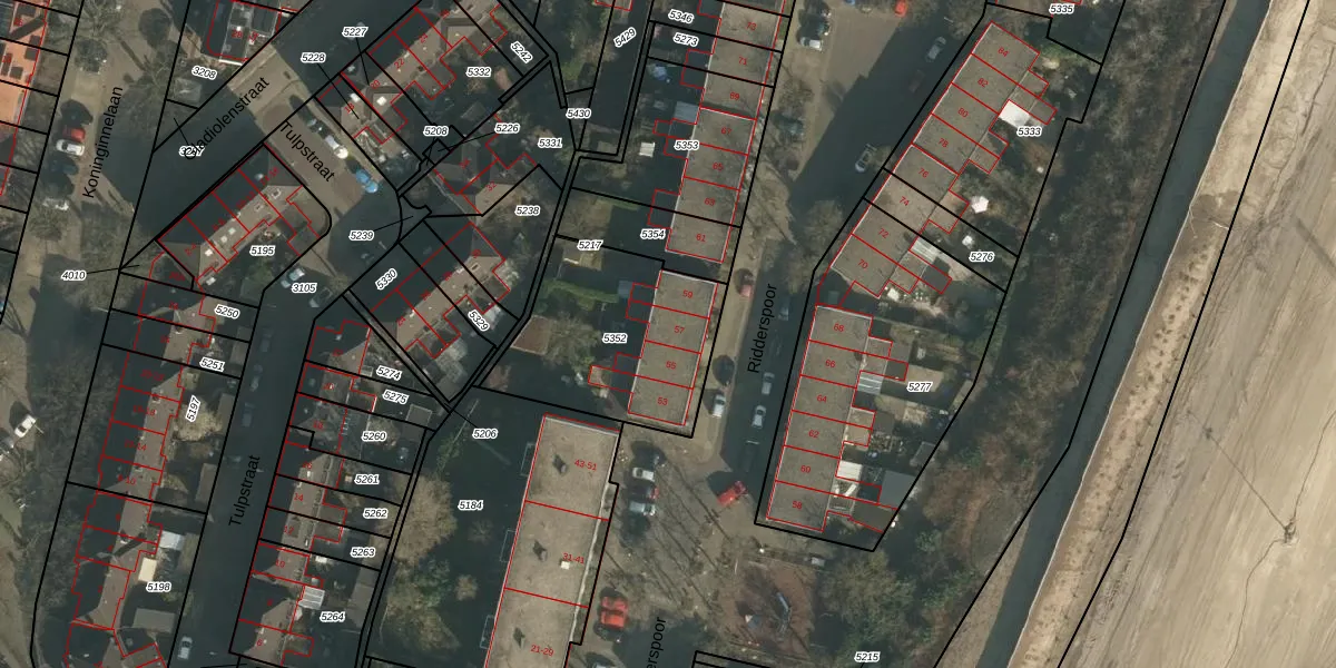 Het perceel waarop Ridderspoor 57 staat heeft een oppervlakte van 700 m². Dit is een groot perceel. De perceeloppervlakte wordt geregistreerd door het Kadaster. Gedetailleerde informatie over de maten van dit perceel kunt u vinden in het rapport Kadastrale kaart met maatvoering van Ridderspoor 57.