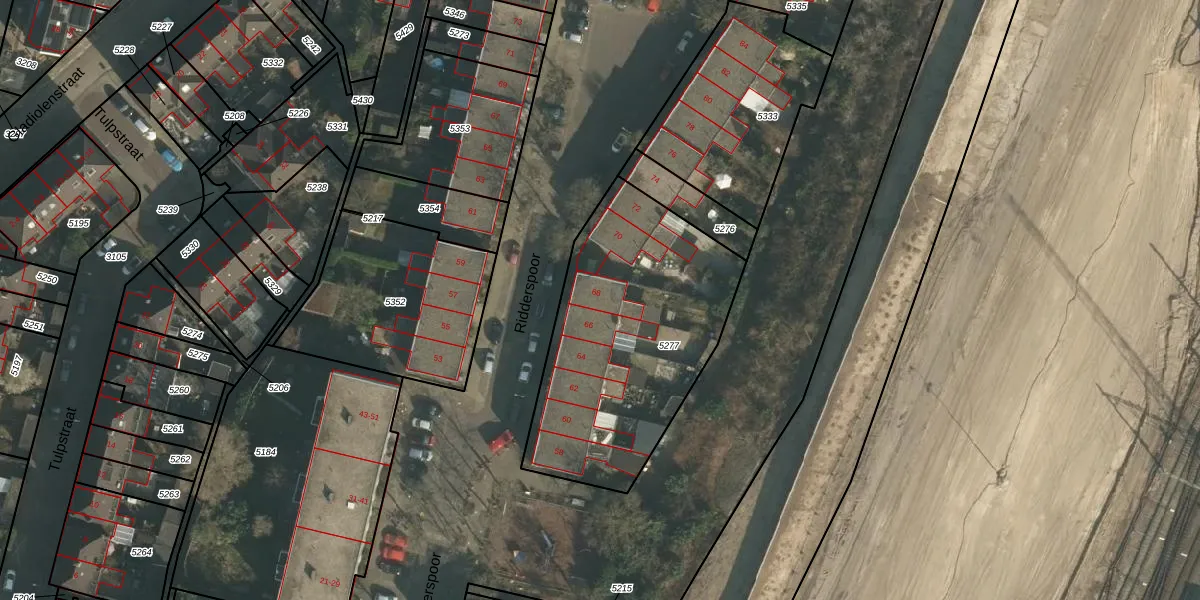 Het perceel waarop Ridderspoor 68 staat heeft een oppervlakte van 1155 m². Dit is een zeer groot perceel. De perceeloppervlakte wordt geregistreerd door het Kadaster. Gedetailleerde informatie over de maten van dit perceel kunt u vinden in het rapport Kadastrale kaart met maatvoering van Ridderspoor 68.