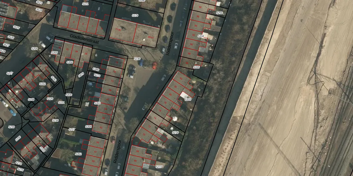 Ridderspoor 82 is gelegen op kadastraal perceel NBH00B5333. Deze kadastrale aanduiding is uniek en wordt gebruikt door het Kadaster om eigendomsrechten en andere zakelijke rechten vast te leggen. Het perceel maakt onderdeel uit van de kadastrale gemeente Neerbosch.