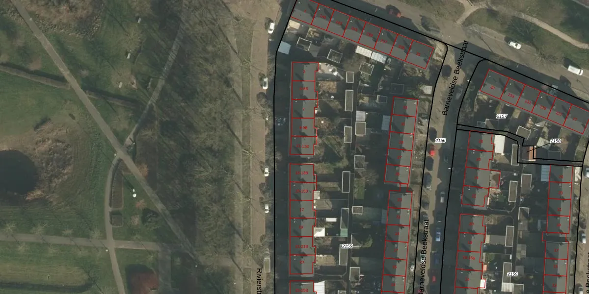 Rivierstraat 11 is gelegen op kadastraal perceel NBH00A2155. Deze kadastrale aanduiding is uniek en wordt gebruikt door het Kadaster om eigendomsrechten en andere zakelijke rechten vast te leggen. Het perceel maakt onderdeel uit van de kadastrale gemeente Neerbosch.
