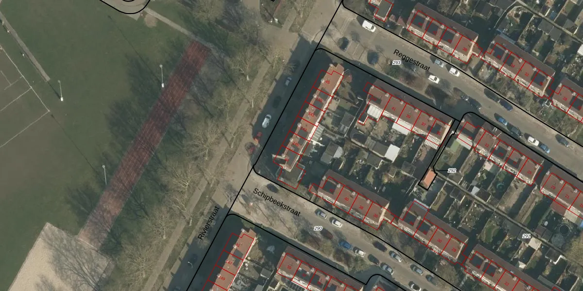 Het perceel waarop Rivierstraat 145 staat heeft een oppervlakte van 9840 m². Dit is een zeer groot perceel. De perceeloppervlakte wordt geregistreerd door het Kadaster. Gedetailleerde informatie over de maten van dit perceel kunt u vinden in het rapport Kadastrale kaart met maatvoering van Rivierstraat 145.