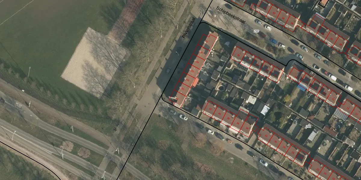 Het perceel waarop Rivierstraat 155 staat heeft een oppervlakte van 9630 m². Dit is een zeer groot perceel. De perceeloppervlakte wordt geregistreerd door het Kadaster. Gedetailleerde informatie over de maten van dit perceel kunt u vinden in het rapport Kadastrale kaart met maatvoering van Rivierstraat 155.