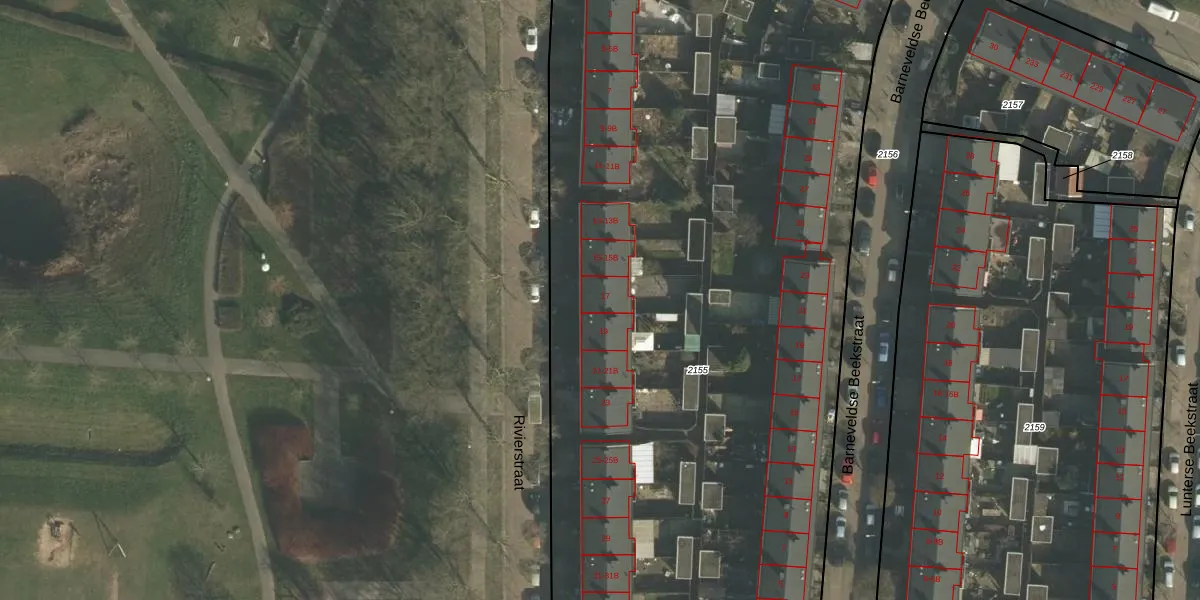 Rivierstraat 17 is gelegen op kadastraal perceel NBH00A2155. Deze kadastrale aanduiding is uniek en wordt gebruikt door het Kadaster om eigendomsrechten en andere zakelijke rechten vast te leggen. Het perceel maakt onderdeel uit van de kadastrale gemeente Neerbosch.