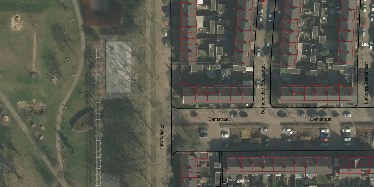 Rivierstraat 37 is gelegen op kadastraal perceel NBH00A2155. Deze kadastrale aanduiding is uniek en wordt gebruikt door het Kadaster om eigendomsrechten en andere zakelijke rechten vast te leggen. Het perceel maakt onderdeel uit van de kadastrale gemeente Neerbosch.