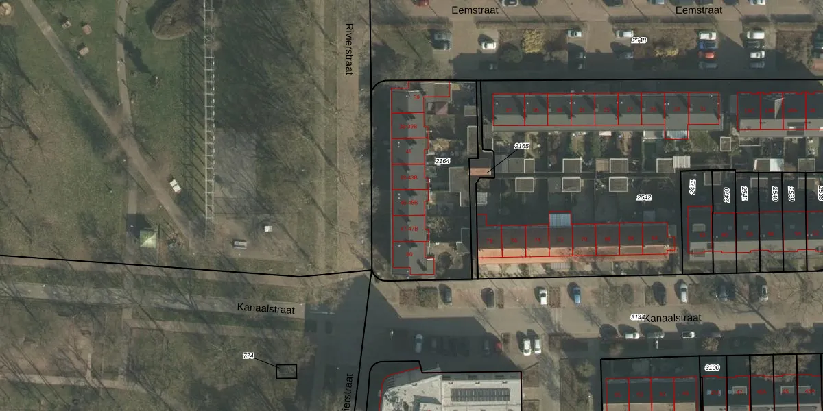 Rivierstraat 45-B is gelegen op kadastraal perceel NBH00A2164. Deze kadastrale aanduiding is uniek en wordt gebruikt door het Kadaster om eigendomsrechten en andere zakelijke rechten vast te leggen. Het perceel maakt onderdeel uit van de kadastrale gemeente Neerbosch.