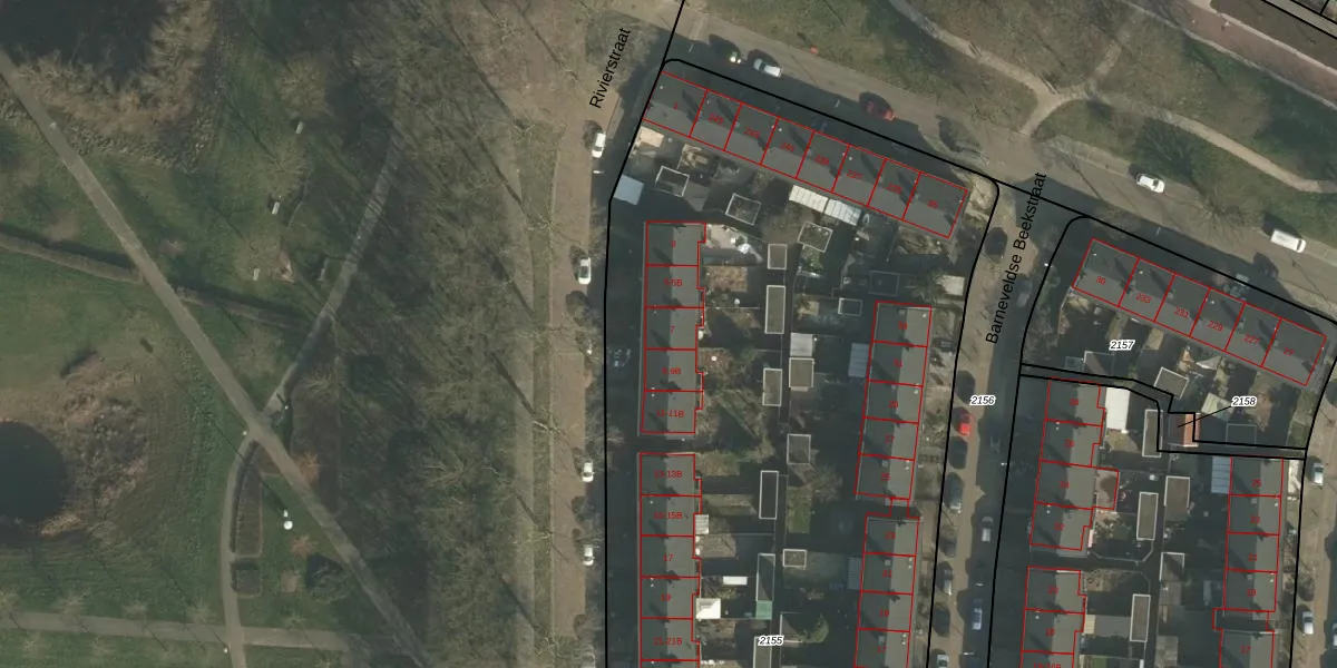 Rivierstraat 7 is gelegen op kadastraal perceel NBH00A2155. Deze kadastrale aanduiding is uniek en wordt gebruikt door het Kadaster om eigendomsrechten en andere zakelijke rechten vast te leggen. Het perceel maakt onderdeel uit van de kadastrale gemeente Neerbosch.