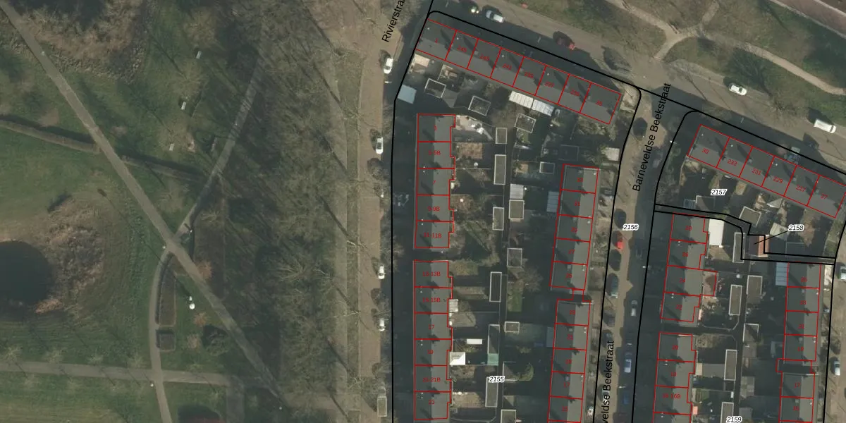 Rivierstraat 9 is gelegen op kadastraal perceel NBH00A2155. Deze kadastrale aanduiding is uniek en wordt gebruikt door het Kadaster om eigendomsrechten en andere zakelijke rechten vast te leggen. Het perceel maakt onderdeel uit van de kadastrale gemeente Neerbosch.