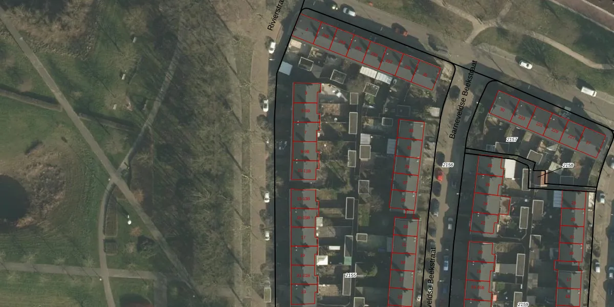 Rivierstraat 9-B is gelegen op kadastraal perceel NBH00A2155. Deze kadastrale aanduiding is uniek en wordt gebruikt door het Kadaster om eigendomsrechten en andere zakelijke rechten vast te leggen. Het perceel maakt onderdeel uit van de kadastrale gemeente Neerbosch.