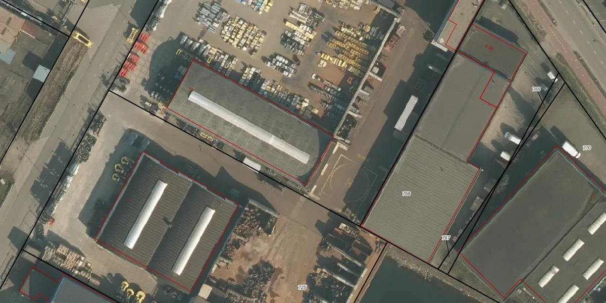 Het perceel waarop Scheepvaartweg 7-A staat heeft een oppervlakte van 1,1 ha. Dit is een zeer groot perceel. De perceeloppervlakte wordt geregistreerd door het Kadaster. Gedetailleerde informatie over de maten van dit perceel kunt u vinden in het rapport Kadastrale kaart met maatvoering van Scheepvaartweg 7-A.