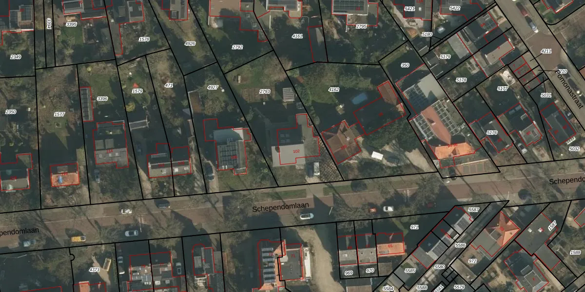 Het perceel waarop Schependomlaan 102 staat heeft een oppervlakte van 940 m². Dit is een groot perceel. De perceeloppervlakte wordt geregistreerd door het Kadaster. Gedetailleerde informatie over de maten van dit perceel kunt u vinden in het rapport Kadastrale kaart met maatvoering van Schependomlaan 102.