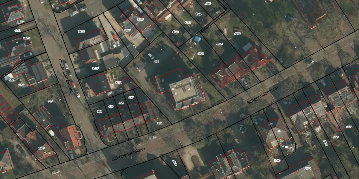 Het perceel waarop Schependomlaan 18-A staat heeft een oppervlakte van 1465 m². Dit is een zeer groot perceel. De perceeloppervlakte wordt geregistreerd door het Kadaster. Gedetailleerde informatie over de maten van dit perceel kunt u vinden in het rapport Kadastrale kaart met maatvoering van Schependomlaan 18-A.