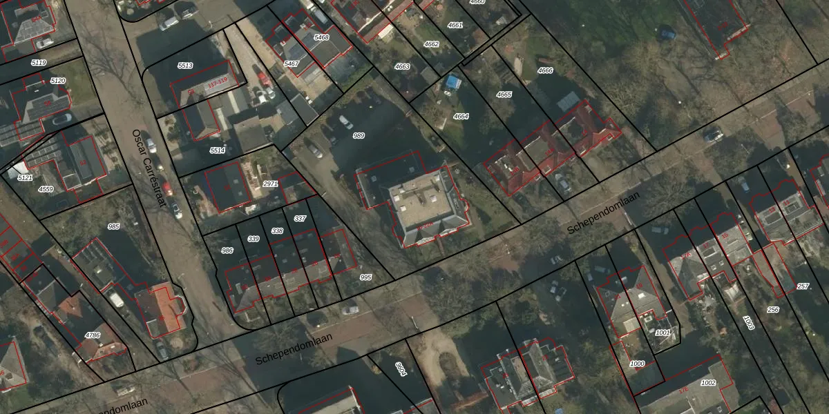 Het perceel waarop Schependomlaan 22-A staat heeft een oppervlakte van 1465 m². Dit is een zeer groot perceel. De perceeloppervlakte wordt geregistreerd door het Kadaster. Gedetailleerde informatie over de maten van dit perceel kunt u vinden in het rapport Kadastrale kaart met maatvoering van Schependomlaan 22-A.