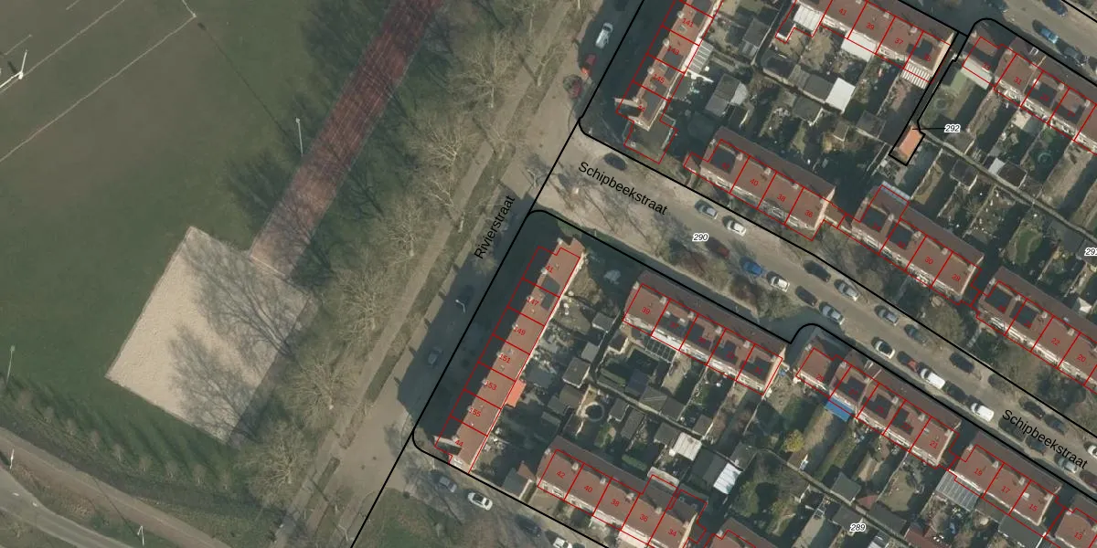 Het perceel waarop Schipbeekstraat 41 staat heeft een oppervlakte van 9630 m². Dit is een zeer groot perceel. De perceeloppervlakte wordt geregistreerd door het Kadaster. Gedetailleerde informatie over de maten van dit perceel kunt u vinden in het rapport Kadastrale kaart met maatvoering van Schipbeekstraat 41.