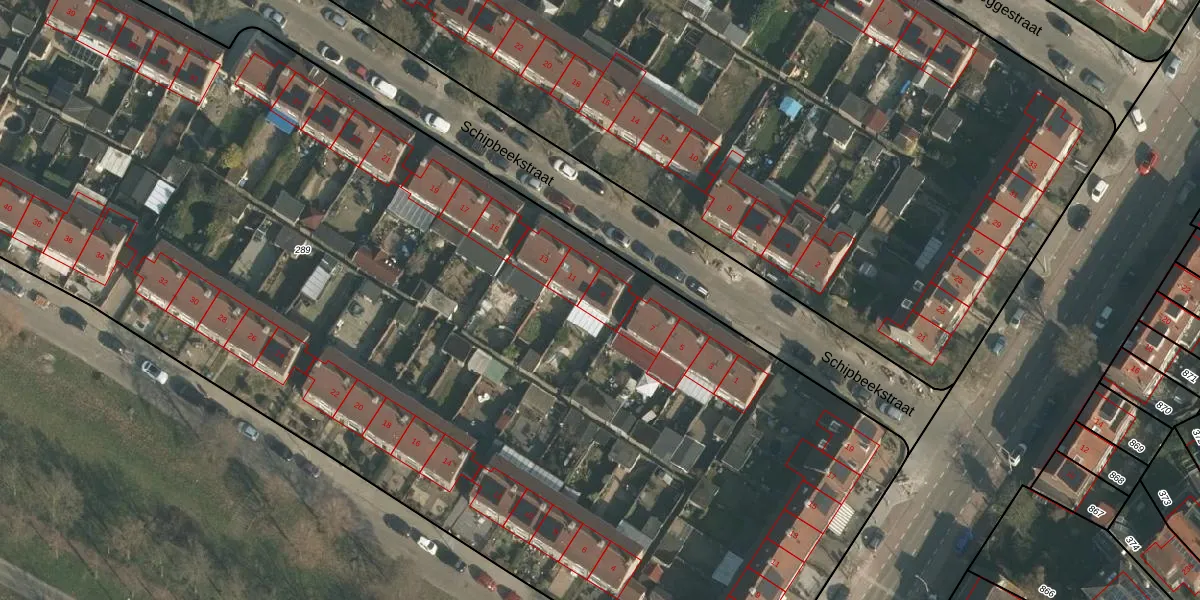 Het perceel waarop Schipbeekstraat 9 staat heeft een oppervlakte van 9630 m². Dit is een zeer groot perceel. De perceeloppervlakte wordt geregistreerd door het Kadaster. Gedetailleerde informatie over de maten van dit perceel kunt u vinden in het rapport Kadastrale kaart met maatvoering van Schipbeekstraat 9.