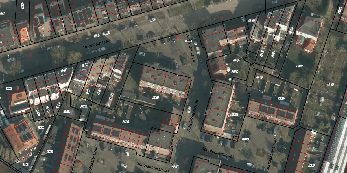 Het perceel waarop Scholeksterstraat 14 staat heeft een oppervlakte van 830 m². Dit is een groot perceel. De perceeloppervlakte wordt geregistreerd door het Kadaster. Gedetailleerde informatie over de maten van dit perceel kunt u vinden in het rapport Kadastrale kaart met maatvoering van Scholeksterstraat 14.