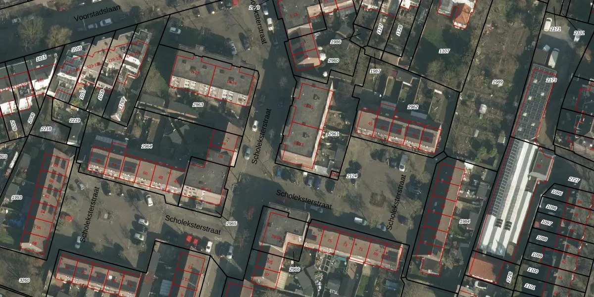 Het perceel waarop Scholeksterstraat 39 staat heeft een oppervlakte van 743 m². Dit is een groot perceel. De perceeloppervlakte wordt geregistreerd door het Kadaster. Gedetailleerde informatie over de maten van dit perceel kunt u vinden in het rapport Kadastrale kaart met maatvoering van Scholeksterstraat 39.