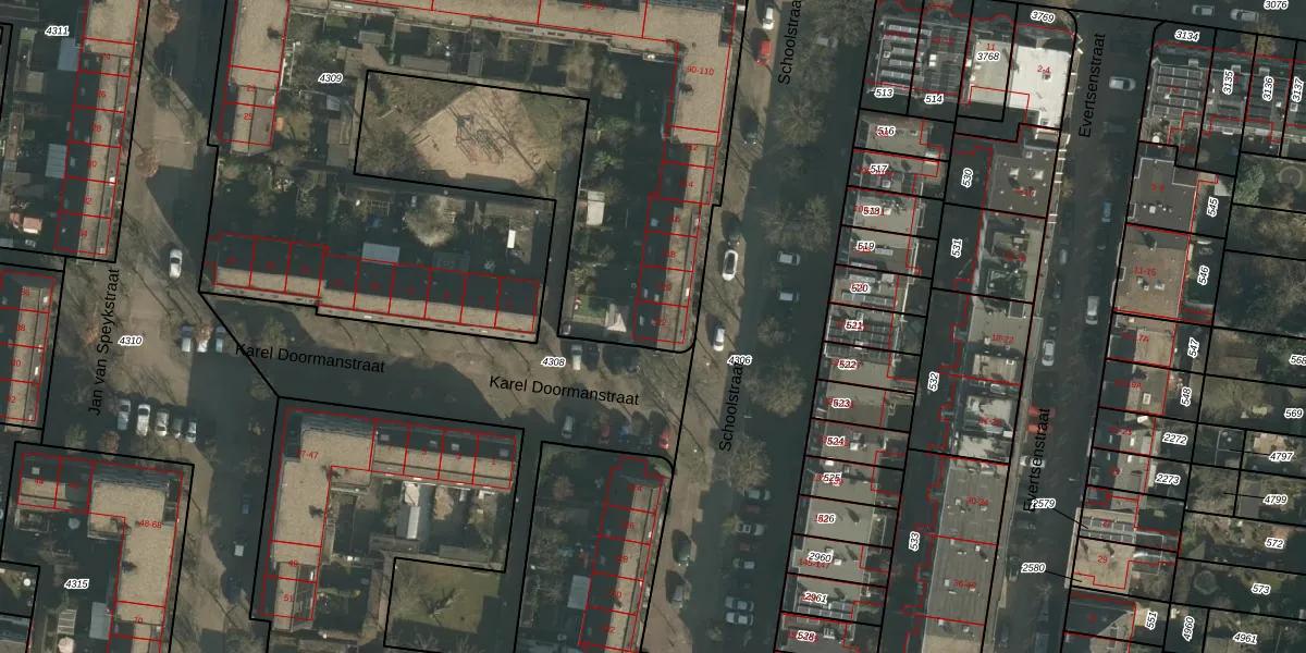Het perceel waarop Schoolstraat 122 staat heeft een oppervlakte van 3830 m². Dit is een zeer groot perceel. De perceeloppervlakte wordt geregistreerd door het Kadaster. Gedetailleerde informatie over de maten van dit perceel kunt u vinden in het rapport Kadastrale kaart met maatvoering van Schoolstraat 122.