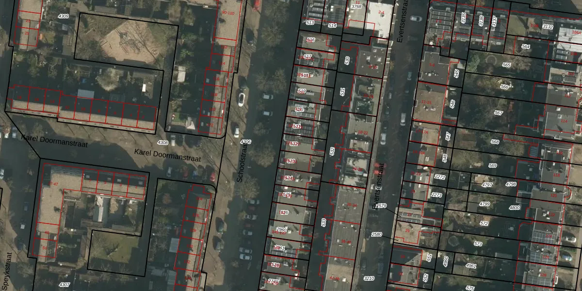 Het perceel waarop Schoolstraat 127 staat heeft een oppervlakte van 92 m². Dit is een klein perceel. De perceeloppervlakte wordt geregistreerd door het Kadaster. Gedetailleerde informatie over de maten van dit perceel kunt u vinden in het rapport Kadastrale kaart met maatvoering van Schoolstraat 127.